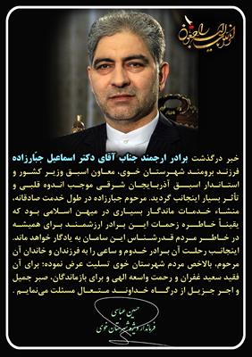 پیام تسلیت فرماندار ویژه شهرستان خوی در پی درگذشت دکتر اسماعیل جبارزاده
