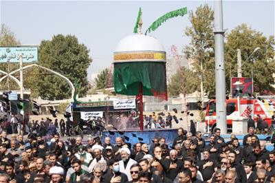 تجمع عظیم عزاداران اربعین حسینی با حضور هیاتهای عزاداری از صبح امروز، چهارشنبه همزمان با اربعین سرور و سالار شهیدان حضرت اباعبدالله الحسین (ع) در میدان شیخ نوایی خوی برگزار شد