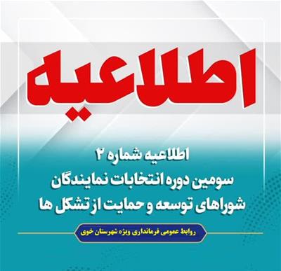 اطلاعیه شماره 2 سومین دوره انتخابات نمایندگان شوراهای توسعه و حمایت از تشکلهای مردم نهاد آذربایجانغربی