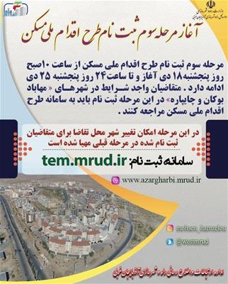 آغاز مرحله سوم ثبتنام طرح اقدام ملی مسکن از پنجشنبه 18 دی