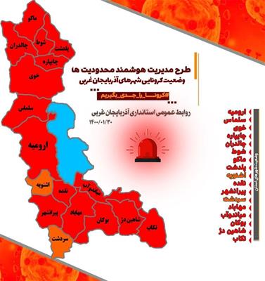 وضعیت کرونایی شهرهای آذربایجان غربی