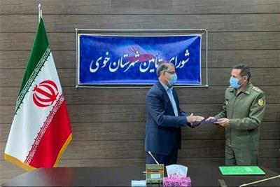 تجلیل حسین عباسی فرماندار ویژه شهرستان خوی از سرهنگ علیرضا نوری جانشین تیپ 264 ارتش بمناسبت 29 فروردین سالروز ارتش جمهوری اسلامی ایران