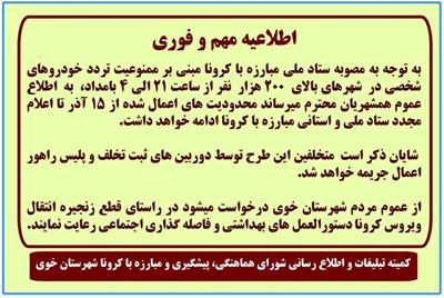 منع تردد خودروهای شخصی در شهر خوی از ساعت ۲۱ الی ۴ بامداد- یکشنبه 16 آذر 1399 ساعت 14:11