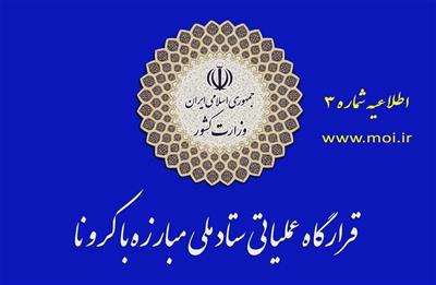 اطلاعیه شماره ۳ قرارگاه عملیاتی مبارزه با کرونا
