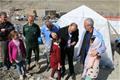 حضور فرماندار شهرستان خوی در تعدادی از چادرهای اسکان موقت زلزلهزدگان و گفتگو با آنان