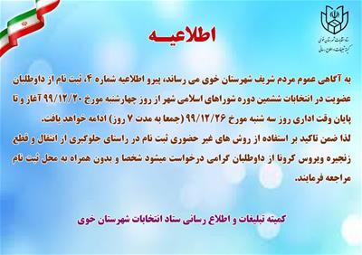 آگهی ثبت نام انتخابات شوراهای اسلامی شهر خوی