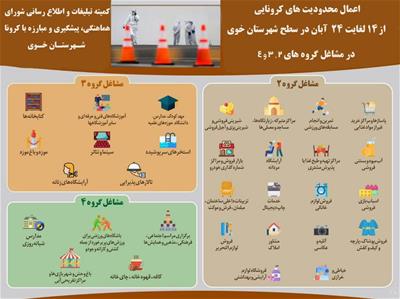 اعمال محدودیت های کرونایی از 14 لغایت 24 آبان در سطح شهرستان خوی در مشاغل گروه های 2 ، 3 و 4