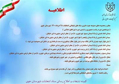 معابر و محدوده های ممنوعه جهت دایری ستادهای تبلیغاتی انتخابات 25 خرداد
