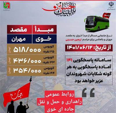 اعلام نرخ جابجایی با اتوبوس از خوی به مقصد مهران