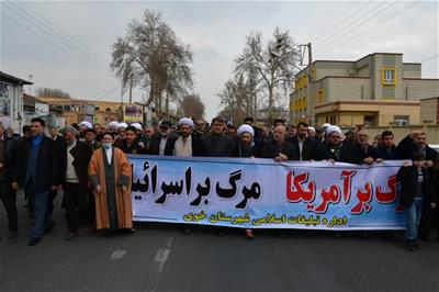 مردم همیشه در صحنه شهرستان خوی پس از اقامه نماز جمعه با برگزاری راهپیمایی و سردادن شعارهای ضد استکباری، اقدام موهن نشریه فرانسوی در توهین به مرجعیت را محکوم کردند.