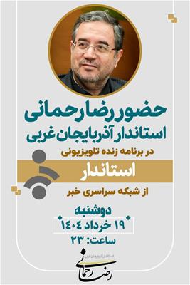 رضا رحمانی استاندار آذربایجانغربی روز دوشنبه 19 خرداد 1404 ساعت 23 در برنامه زنده تلویزیونی "استاندار" شبکه سراسری خبر صداوسیما حضور خواهد داشت.