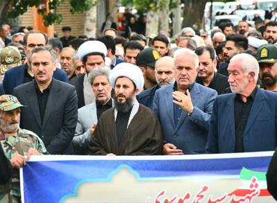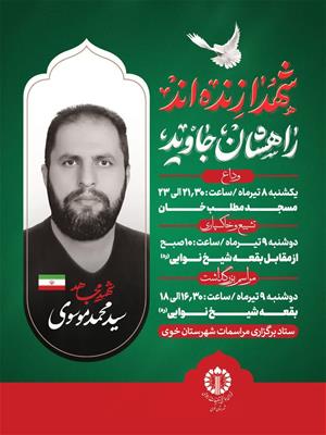 شهید سید محمد موسوی اهل شهرستان خوی که چندی پیش در بمباران رژیم صهیونسیتی در کرج به شهادت نائل آمد، بدستان مردم دارالمومنین شهرستان خوی تشییع و به خاک سپرده شد.